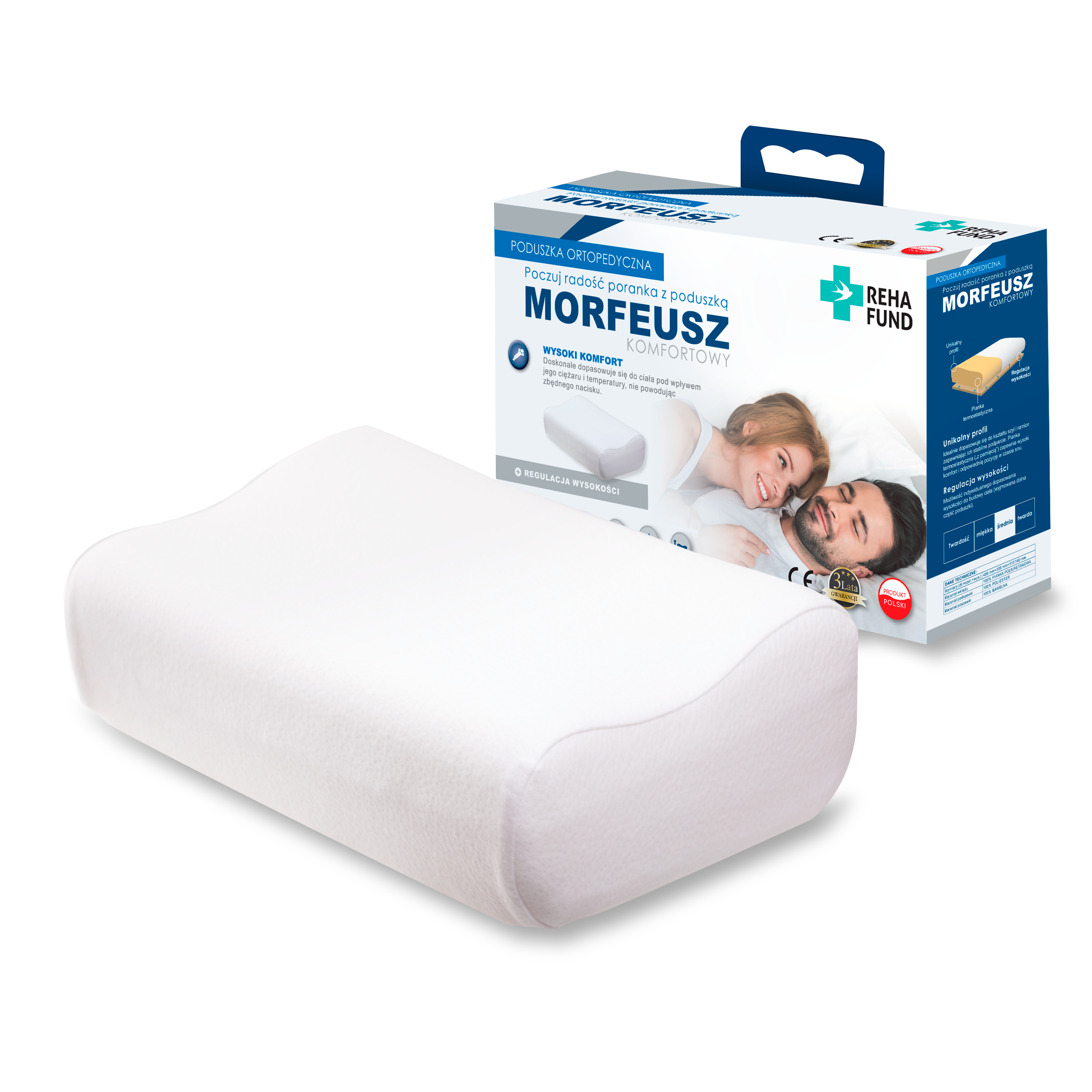 Poduszka ortopedyczna została zaprojektowana z myślą o zapewnieniu stabilnego podparcia głowy i odcinka szyjnego kręgosłupa, co pomaga w profilaktyce zdrowego snu oraz łagodzeniu bólu, napięcia mięśniowego, mrowienia i drętwienia kończyn. Dzięki zastosowaniu wysokiej gęstości pianki termoelastycznej („z pamięcią”), poduszka idealnie dopasowuje się do kształtu ciała pod wpływem jego temperatury i ciężaru, minimalizując nacisk i zapobiegając odgnieceniom.